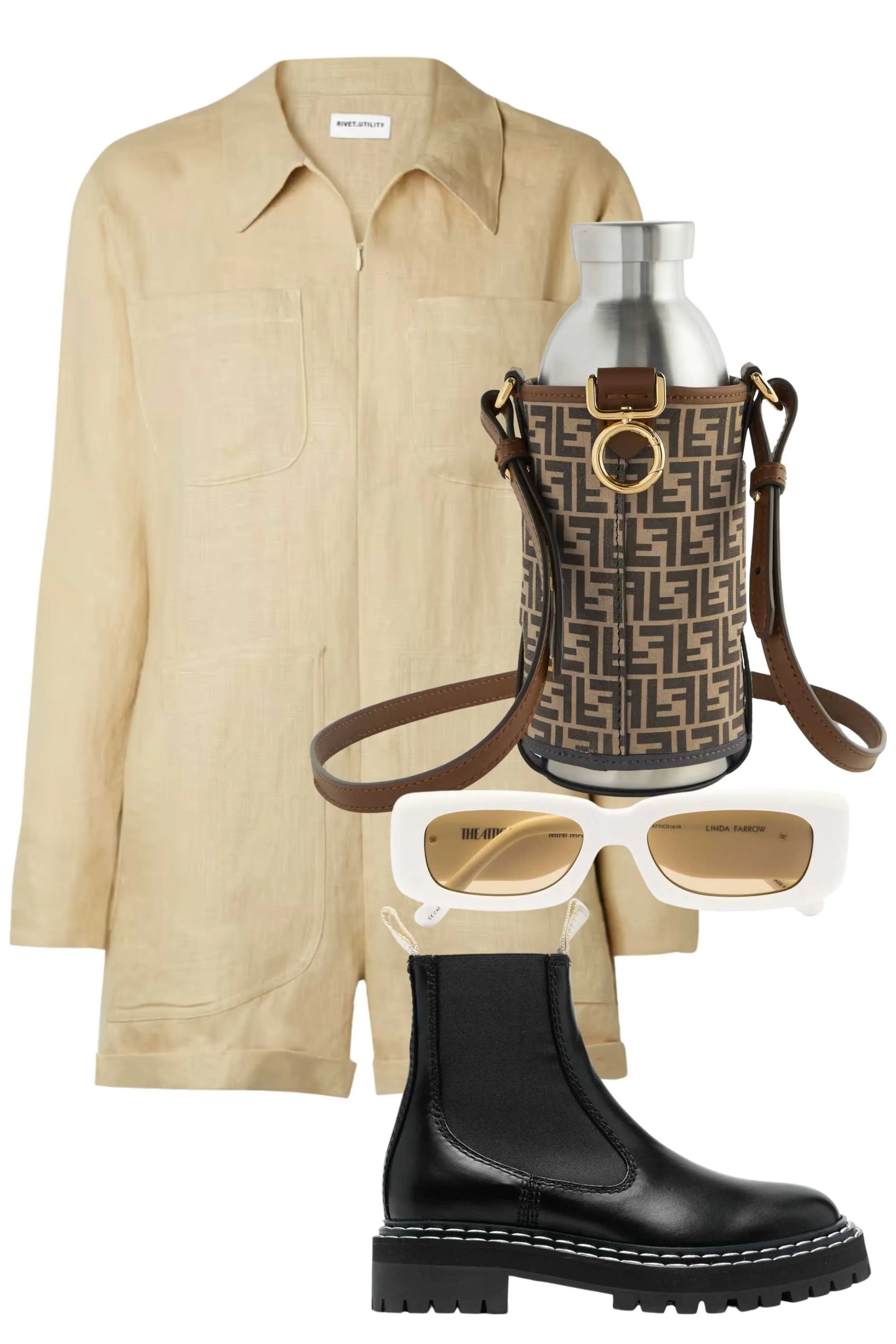 Fendi + 24Bottles - Printed leather bag and brushed steel bottle